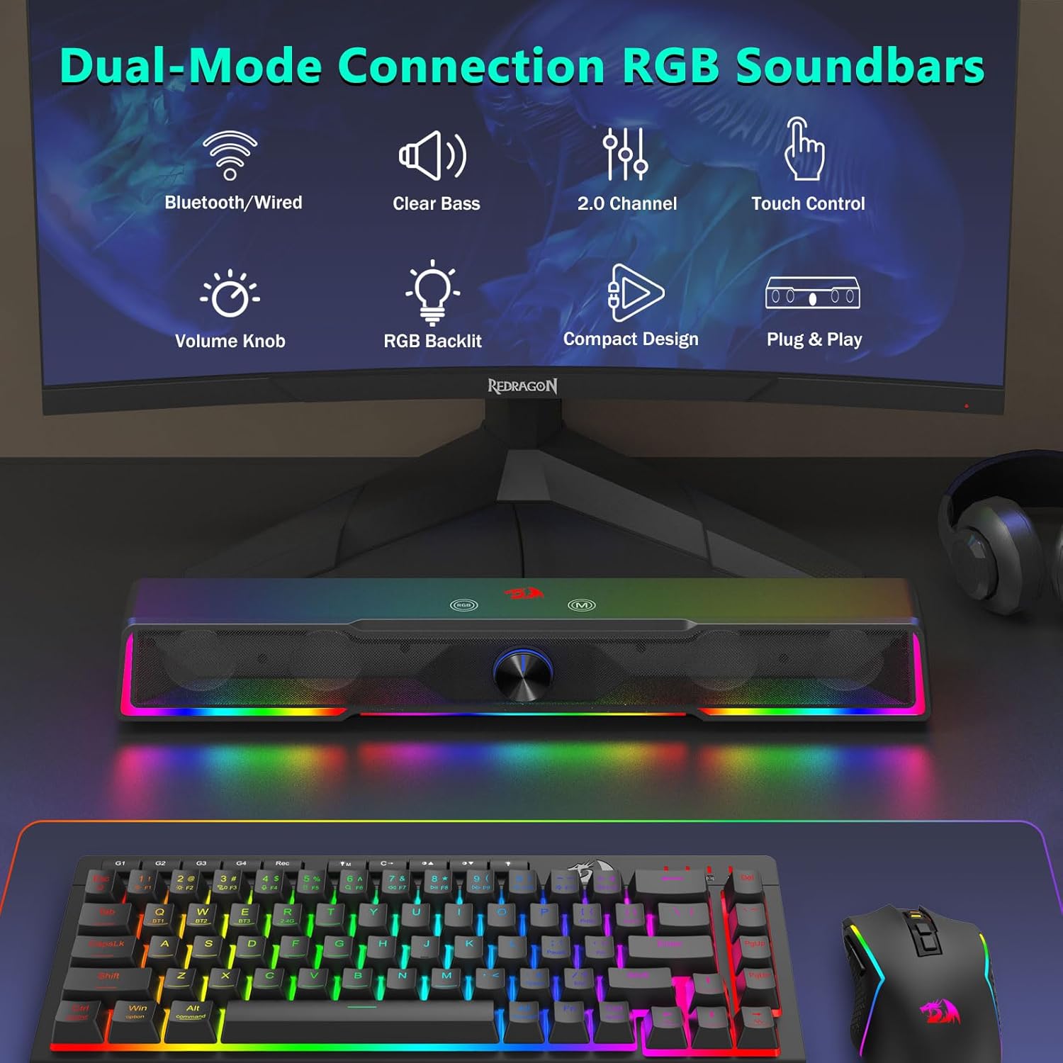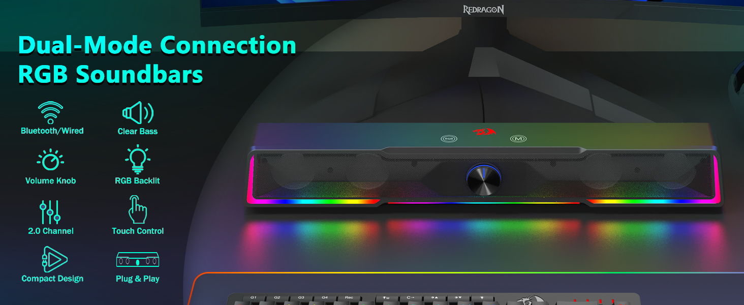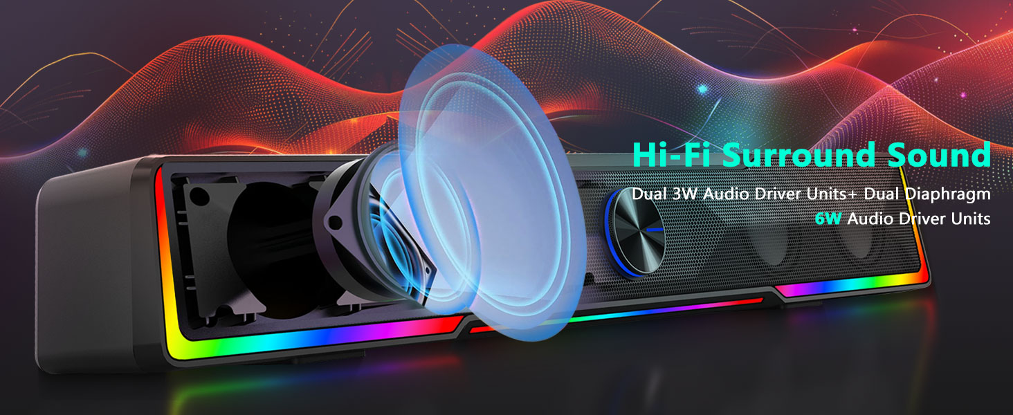 Жоғары сапалы стерео дыбыс Күшті стерео драйверлерімен жабдықталған Black GS516 Bluetooth/USB сымды қосылымы дыбыс тақтасының дыбыс деңгейі тұтқасы компьютер динамигі таза вокалмен, егжей-тегжейлі орташа диапазонмен және жақсартылған басс реакциясымен теңдестірілген дыбысты береді. Динамик фильмдерді, ойындарды, подкасттарды және музыканы қоса алғанда, мазмұнның бірнеше түрі үшін иммерсивті дыбыс шығаруға арналған.