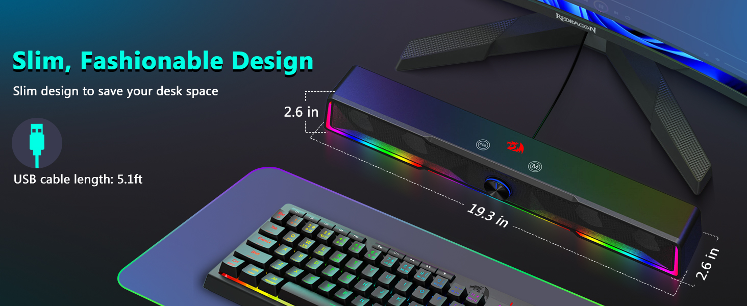 Кеңістікті үнемдейтін дыбыс тақтасының дизайны Монитордың екі жағында да үлкен аумақтарды алып жатқан дәстүрлі динамиктерден айырмашылығы, Black GS516 Bluetooth/USB сымды қосылым дыбыс тақтасының дыбыс деңгейі тұтқасы компьютер динамигі көптеген компьютер экрандарының астына ыңғайлы болатын жұқа саундбар құрылымын ұсынады. Бұл ықшам дизайн әлі де бай және әсерлі дыбысты жеткізе отырып, таза және ұйымдастырылған үстел ортасын сақтауға көмектеседі.