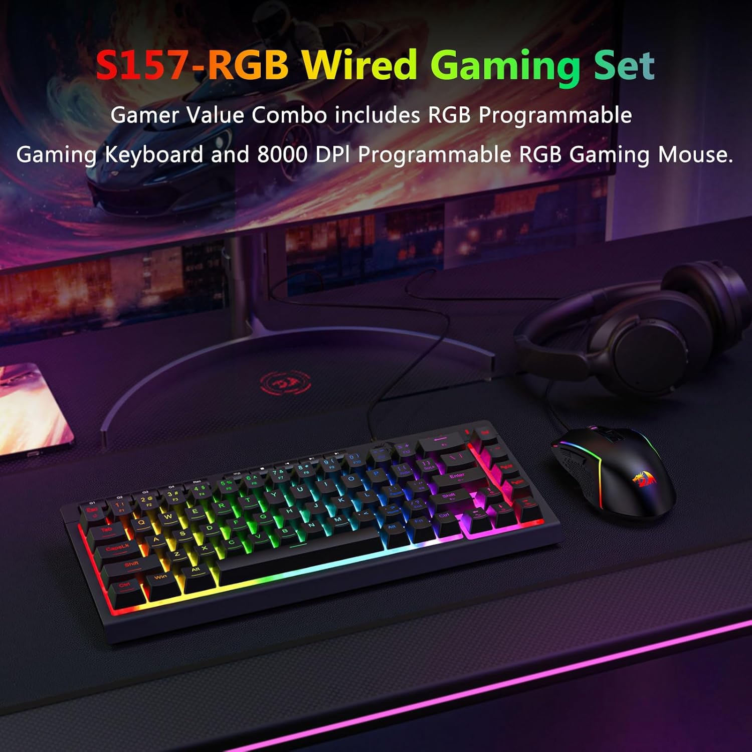 Қарапайым дизайнымен және сенімді функционалдығымен Black S157 RGB артқы жарықтандырылған сымды ойын пернетақтасы мен тінтуірдің комбинациясы әртүрлі орталарда тұрақты енгізу өнімділігін іздейтін пайдаланушылар үшін сенімді таңдау болып табылады.