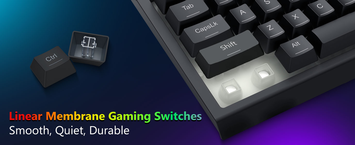 Кілттер дәйекті кері байланыс пен теңдестірілген іске қосуды қамтамасыз ету үшін жасалған. Бұл ойын ойнау немесе кеңседе пайдалану кезінде дәл теруді және сенімді енгізуді қамтамасыз етеді.