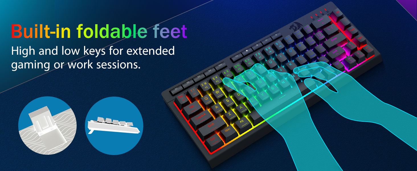 RGB жарықтандыруы аз жарық жағдайында пайдалану мүмкіндігін арттырады, бұл пайдаланушыларға шоғырлануға әсер етпестен кілттерді оңай табуға мүмкіндік береді.