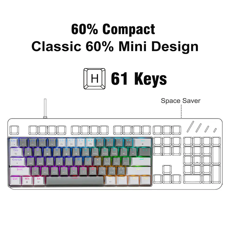 【Пайыздық пернетақта портативті дизайны】Бұл портативті 60% механикалық сымды ойын ойыны тамаша өлшемге ие және