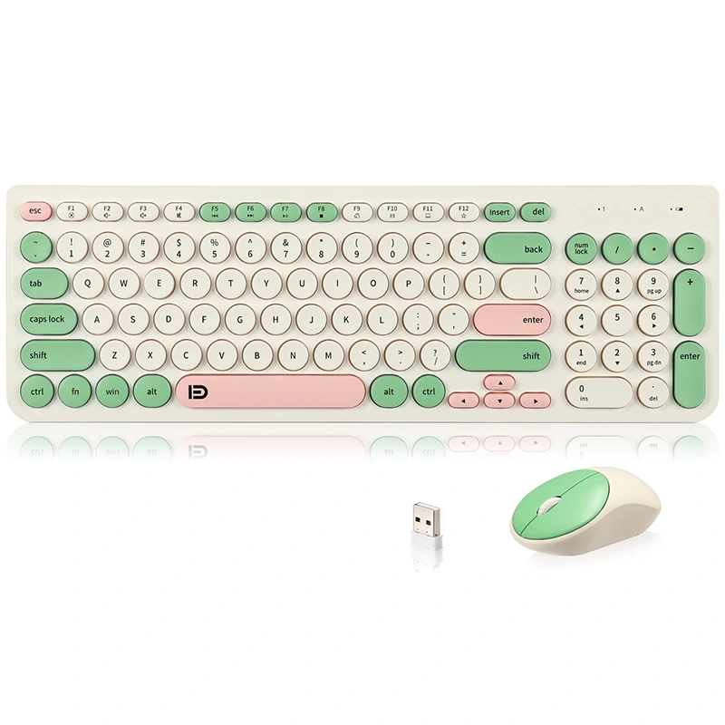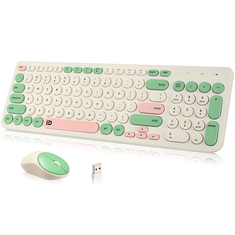 Сымсыз пернетақта мен тінтуір 2,4 ГГц комбинациясы, дөңгелек перне қақпақтары бар ретро жазу машинкасы, 104 перне Үстел, ноутбук және компьютерге арналған толық өлшемді USB тыныш сүйкімді тінтуір